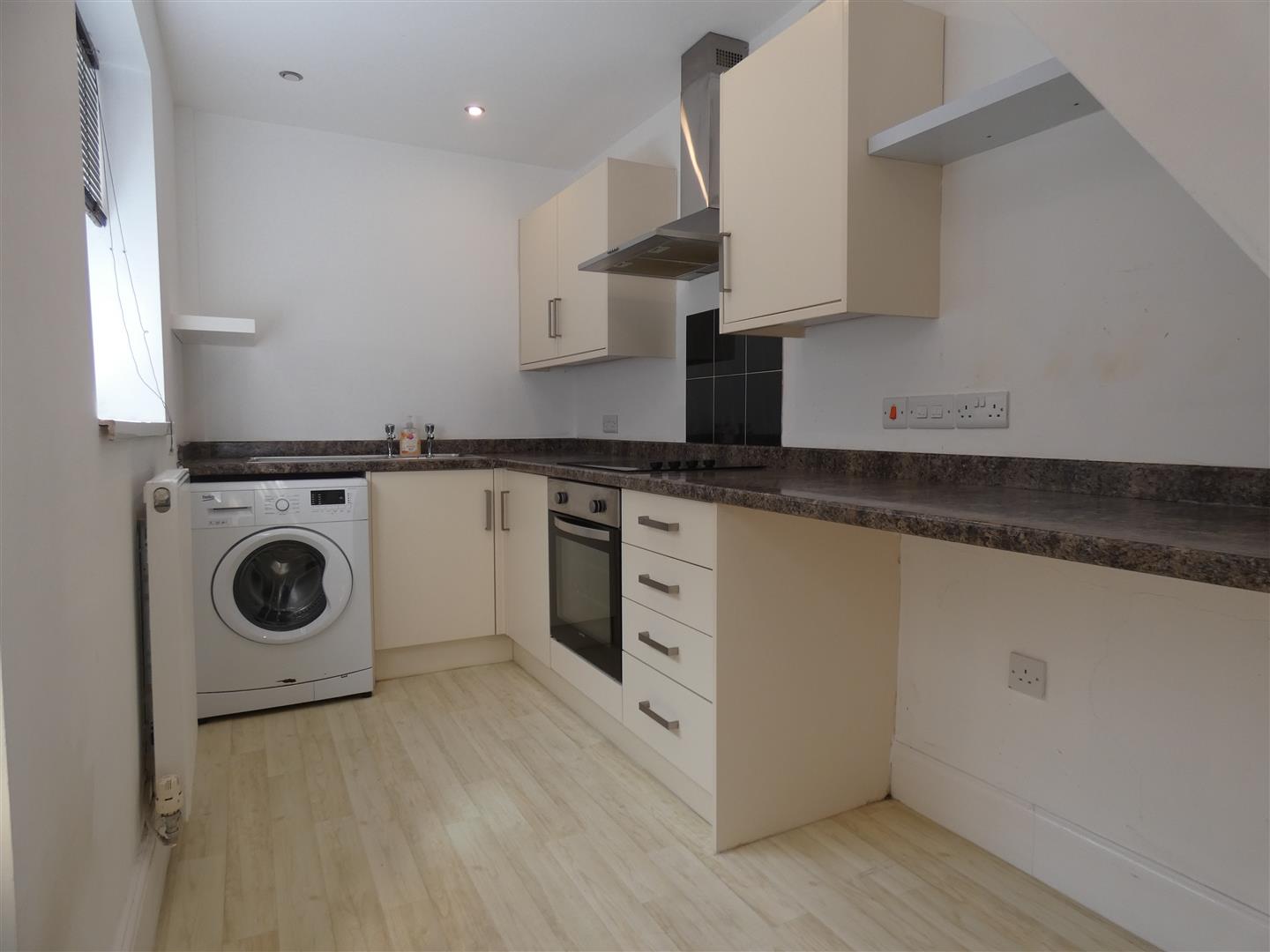 The galley kitchen is fitted with a range of cream wall and base units, marble effect roll edge worktops, fitted with Lamona electric hob with tiled splash back& extractor fan over, Lamona electric built in oven . Stainless steel single bowl sink with drainer and taps over, inset lighting to ceiling, space for automatic washing machine, central heating radiator, uPVC double glazed window to the side and uPVC half opaque glazed door to the side providing access to the rear garden.