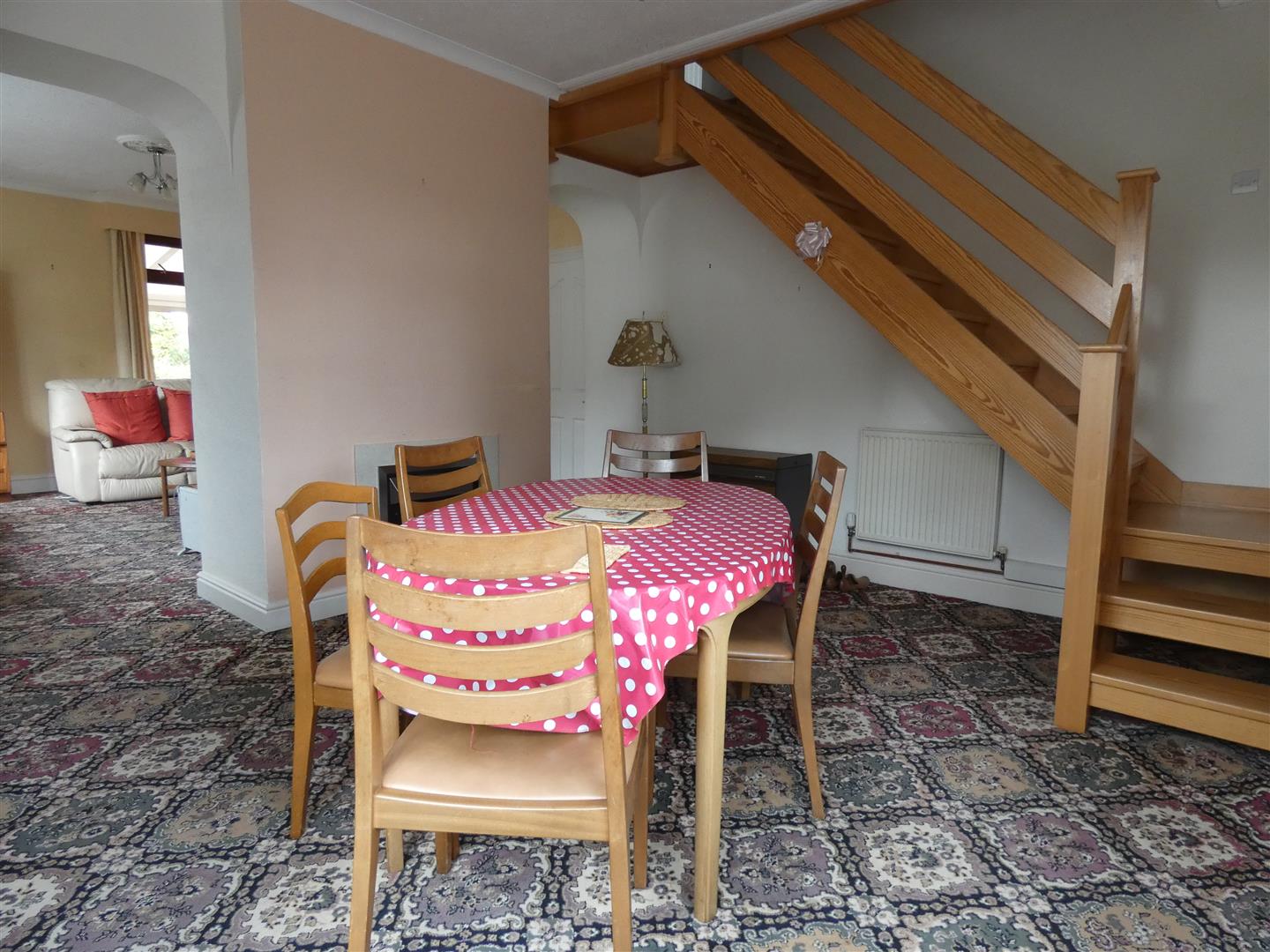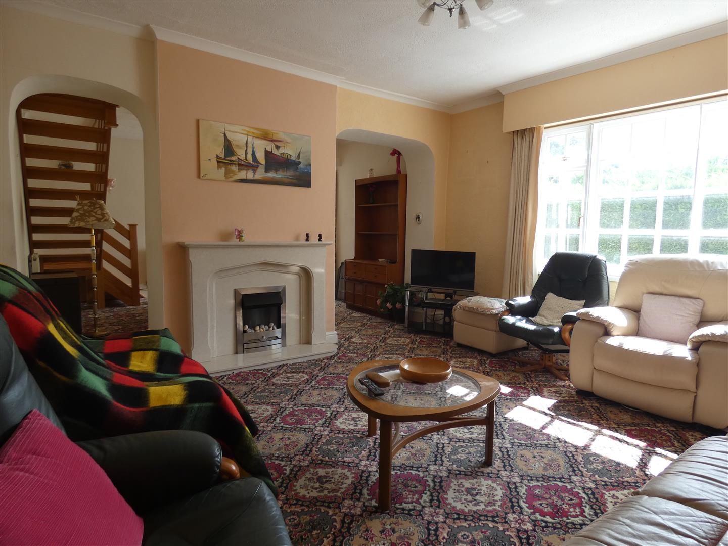 With windows to the side and rear elevation, feature marble effect fireplace with electric fire, central heating radiator, coved and textured ceiling feature rose to light point, 2 wall lights, TV aerial point, power points, telephone point, archways to either side of the chimney breast leading to the Dining Room