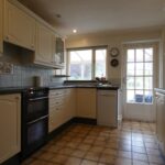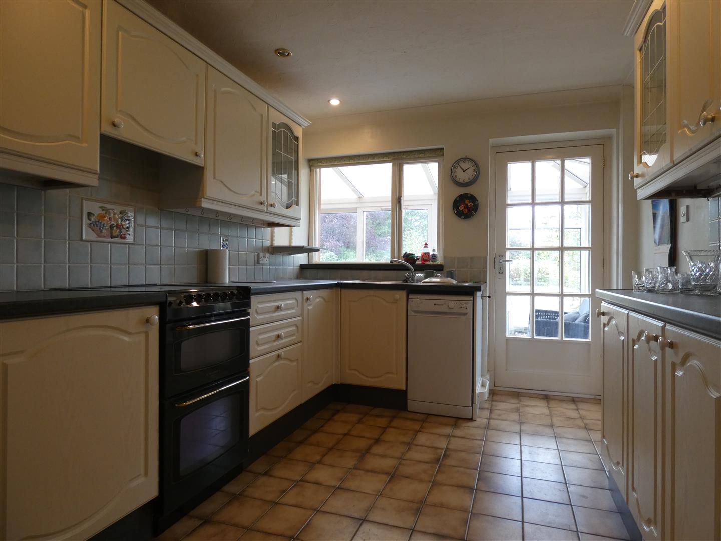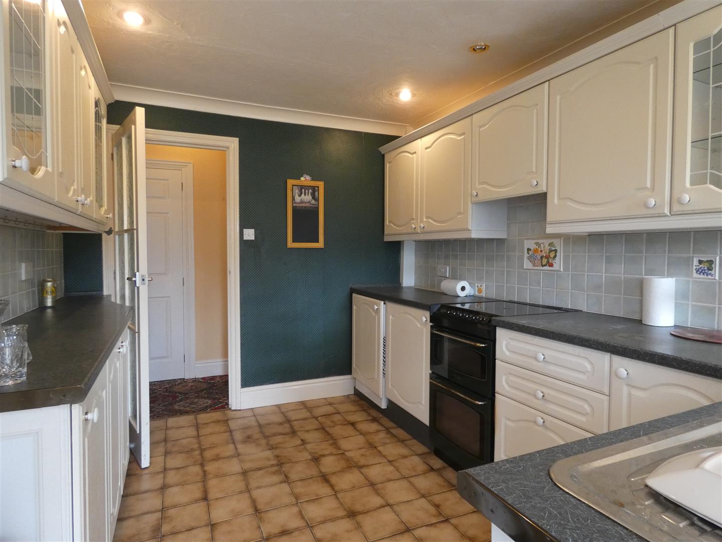Fitted with a range of wall and base units providing storage, laminate roll edge work surfaces with tiled splash, single drainer sink unit with mixer tap over, central heating radiator, coved and textured ceiling with inset spot lights, electric cooker point, power points, kick board electric heater, plumbing point for dishwasher, ceramic tiled floor, window to rear, half glazed door leading to the Conservatory