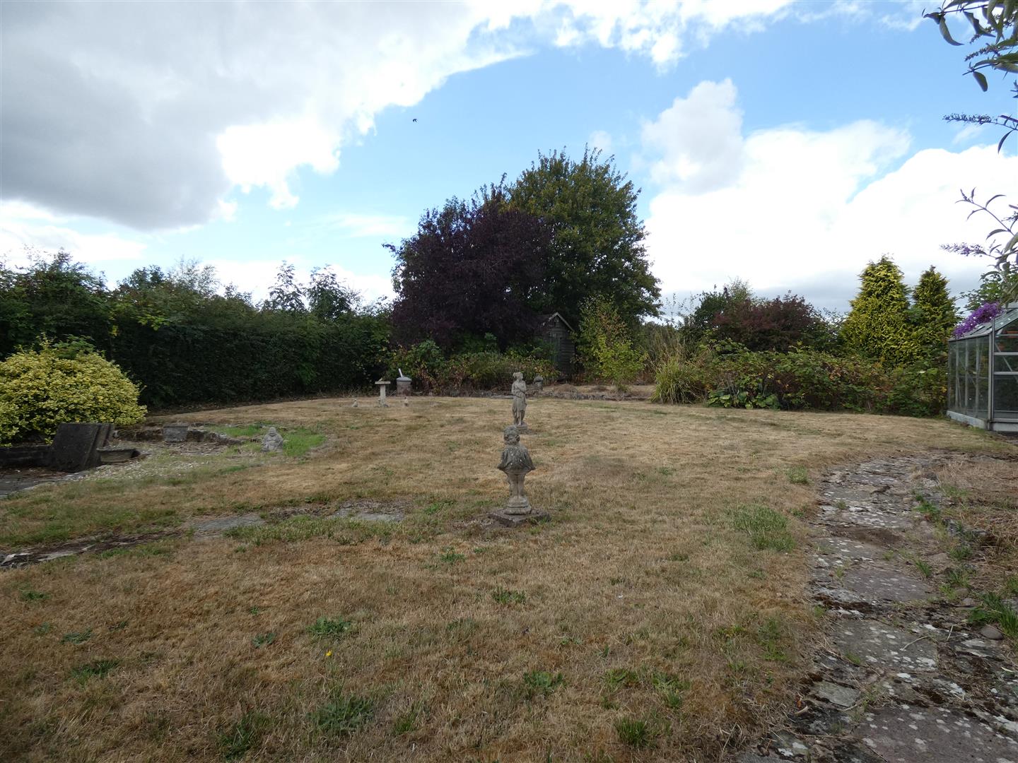 Spacious block paved driveway providing parking & leads to the Garage, mature shrub borders, boundary wall to front, two lights.