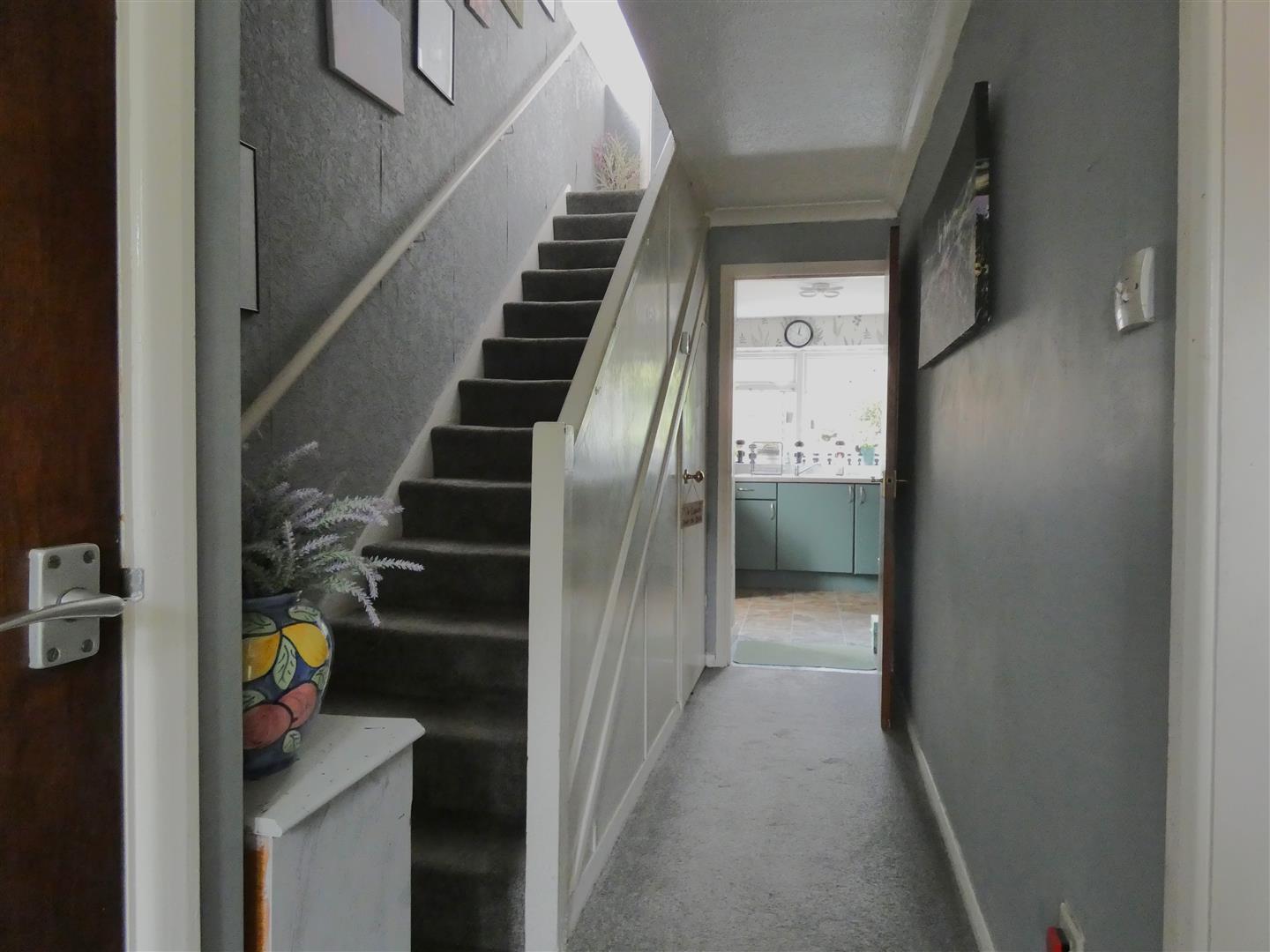 With a uPVC partially double glazed door to the front with opaque glazed panel providing access from the front, with ceiling light point, central heating radiator, electric power points, understairs storage and doors off to the Lounge, Kitchen, WC and stairs off to first floor.